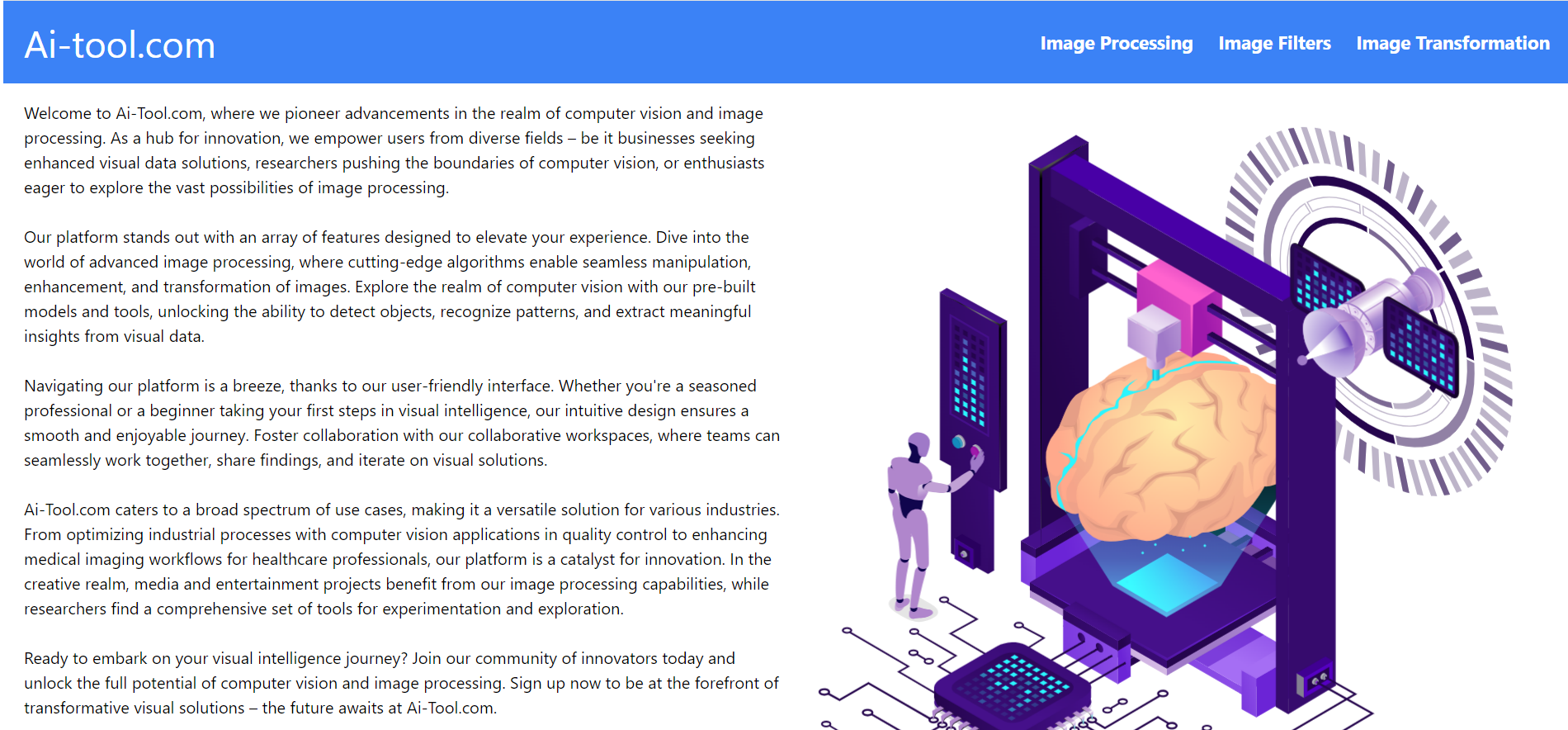 Overview The AI Tool Website provides a suite of tools for image processing, filtering, and transformation. It is designed to offer a comprehensive ...