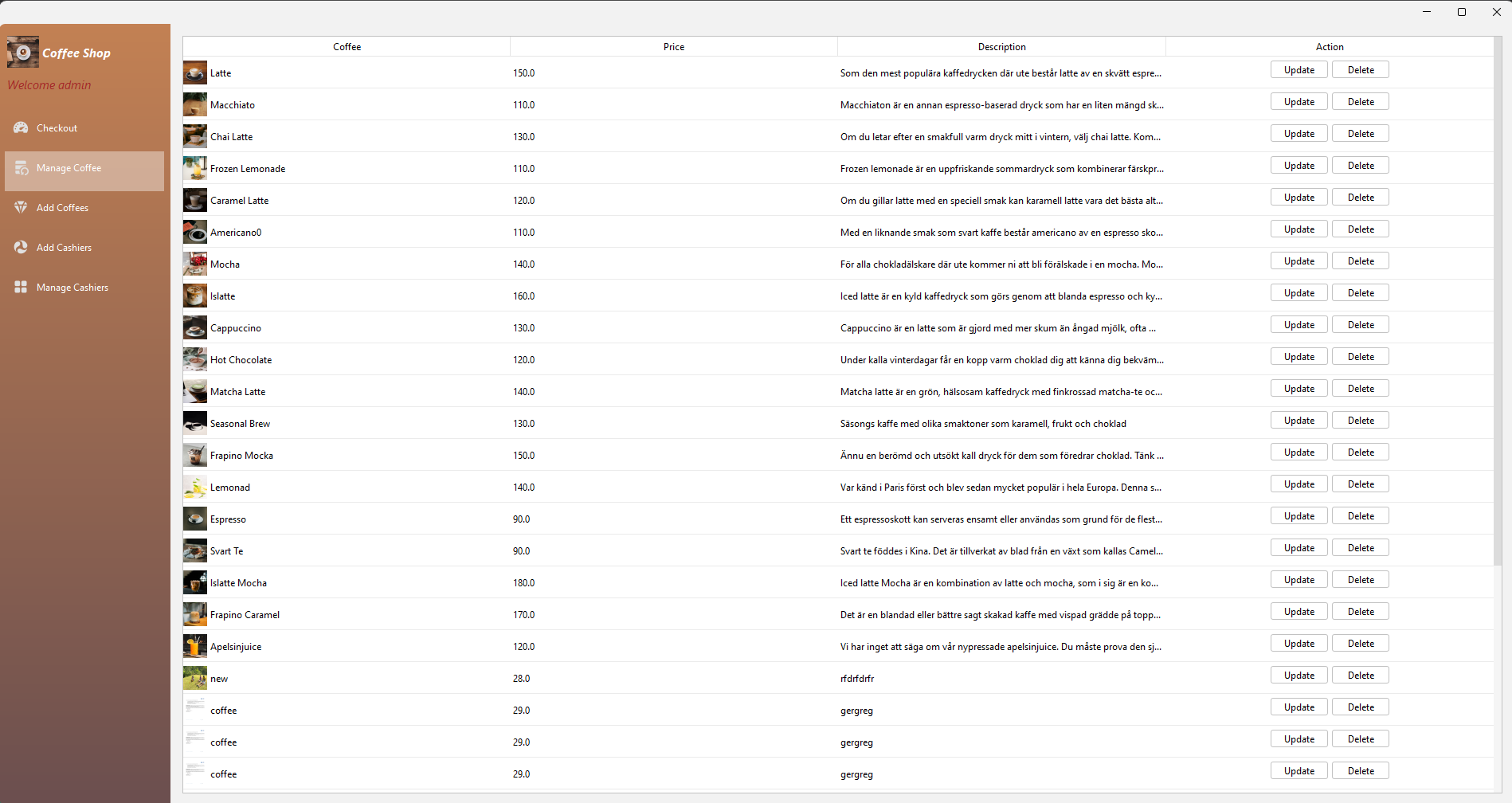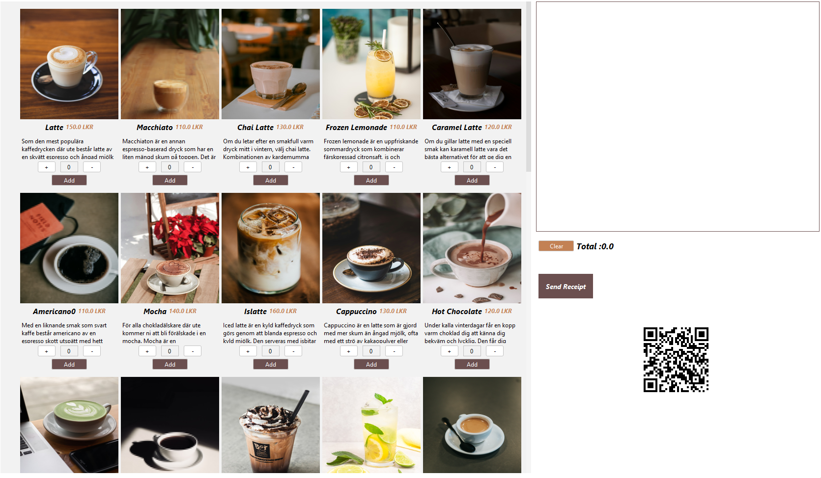 The Coffee Shop Management System is a comprehensive software solution designed to streamline operations and enhance customer experience in a coffee shop environment. This system consists of a Java Swing application for cashiers, a Node.js API for backend operations, and QR code generation for seamless transaction processing.
