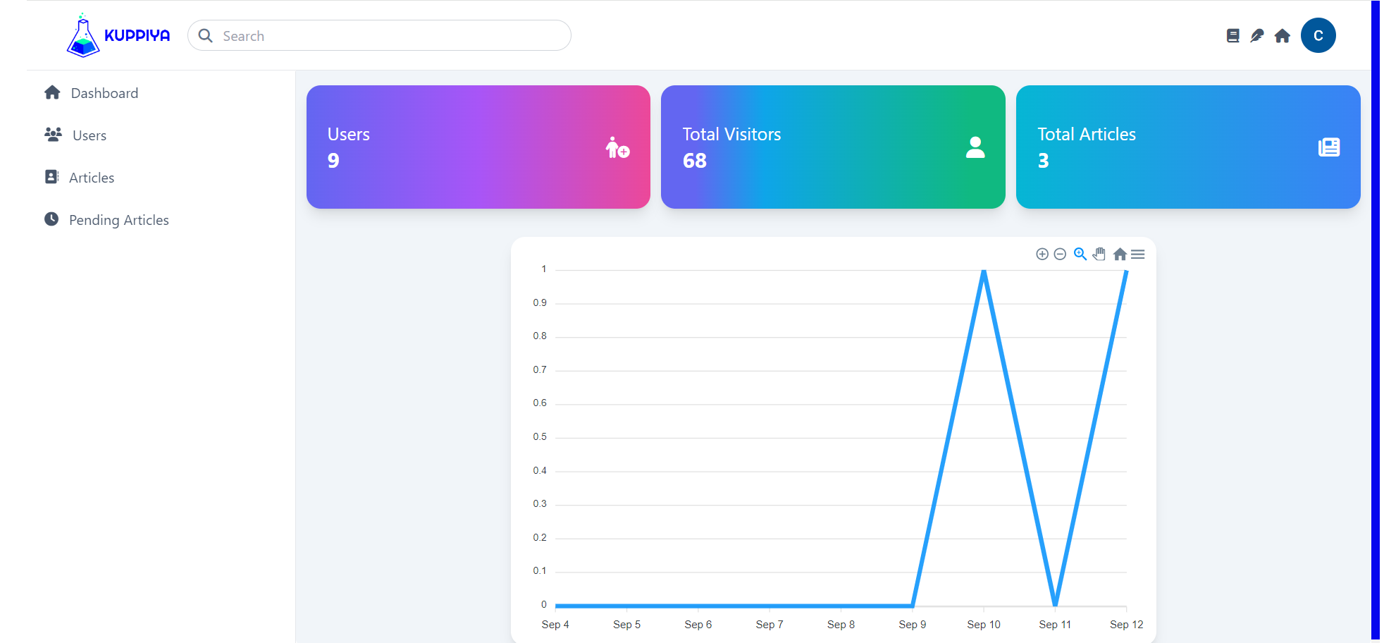 Kuppiya is a blog management platform that allows users to create and publish blog posts. It is designed as a single-page application using HTMX for seamless interactions. The platform includes an admin panel for managing posts and monitoring site activity. Admins receive email notifications for new posts and can review and approve content before it is displayed. Additionally, a Flutter app provides a WebView to access the Kuppiya page.